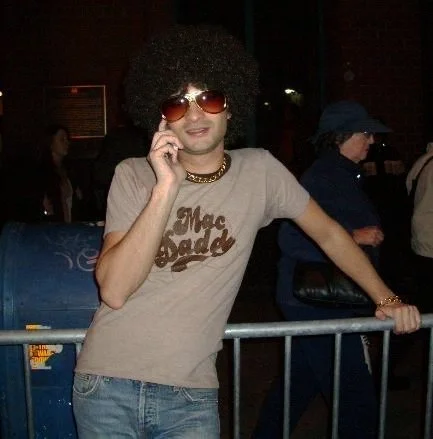 2005: OK, although I tried to make up for my disco look from the previous year, I should point out this is NOT the same wig from the previous picture. HOWEVER, the sunglasses are, and if I remember correctly, they were Elvis glasses that I bought from a street vendor.